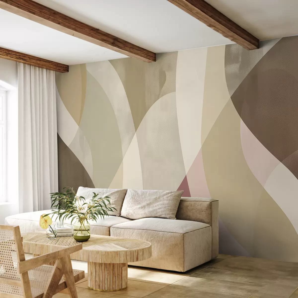 Soft curves in muted tones with flowing lines and beige gradients, minimalist and modern - Wall mural (No. w01334v1)
