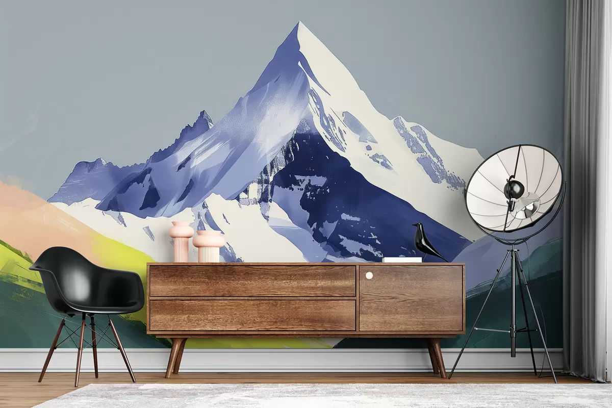 Mountain landscape with brush strokes - Wall mural (No. w01394)