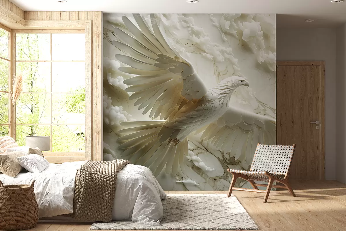 3D white eagle on a background of clouds and marble - Wall mural (No. w01477)