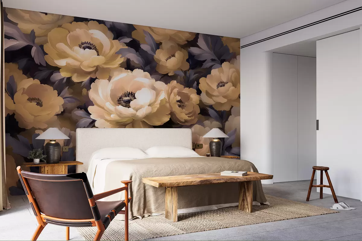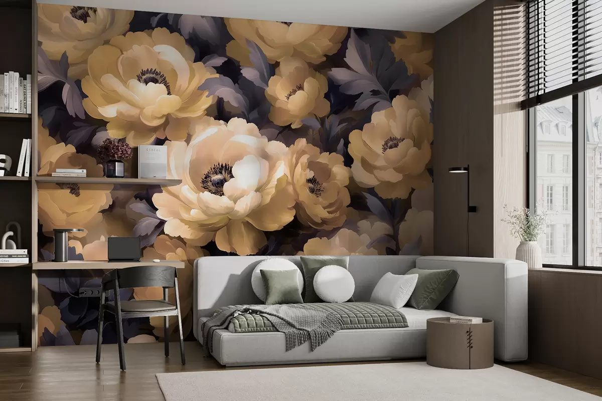 Floral oil painting style based on beige and purple color - Wall mural (No. w01581)