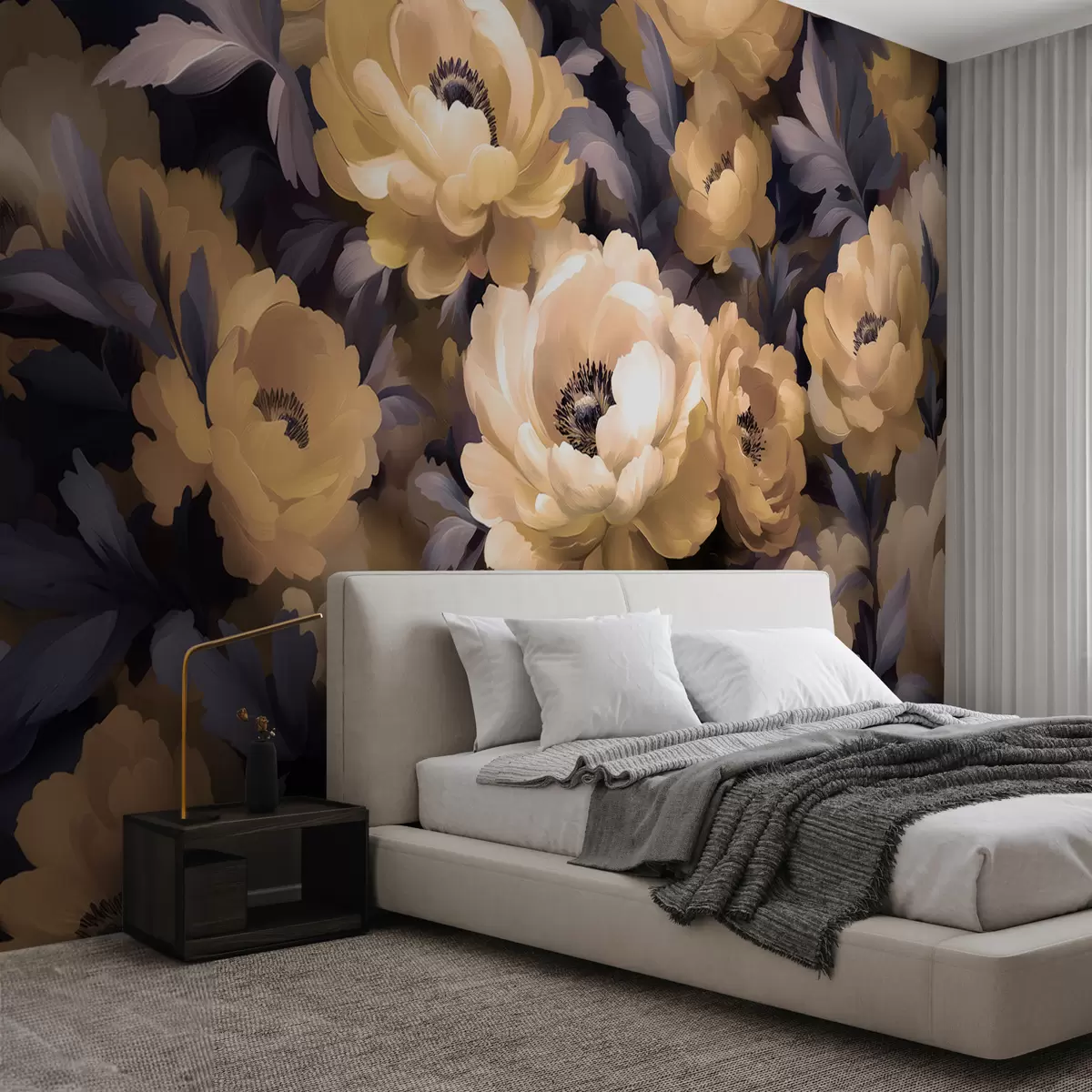 Floral oil painting style based on beige and purple color - Wall mural (No. w01581)
