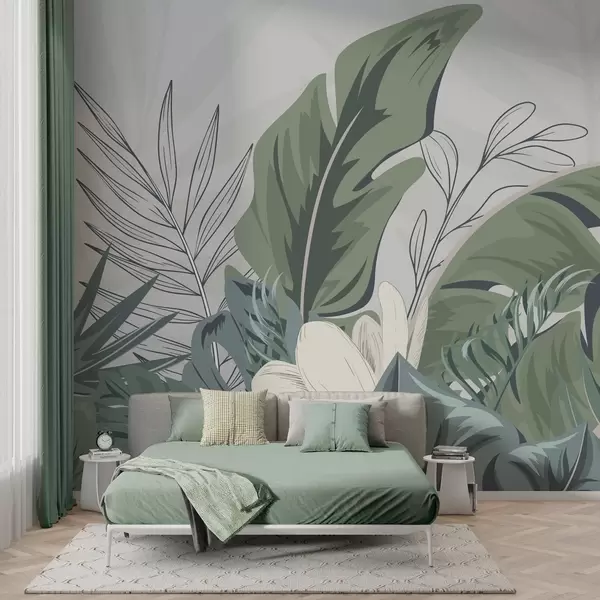 Lush greenery in soft pastel tones - Wall mural (No. w01598)