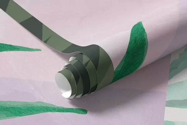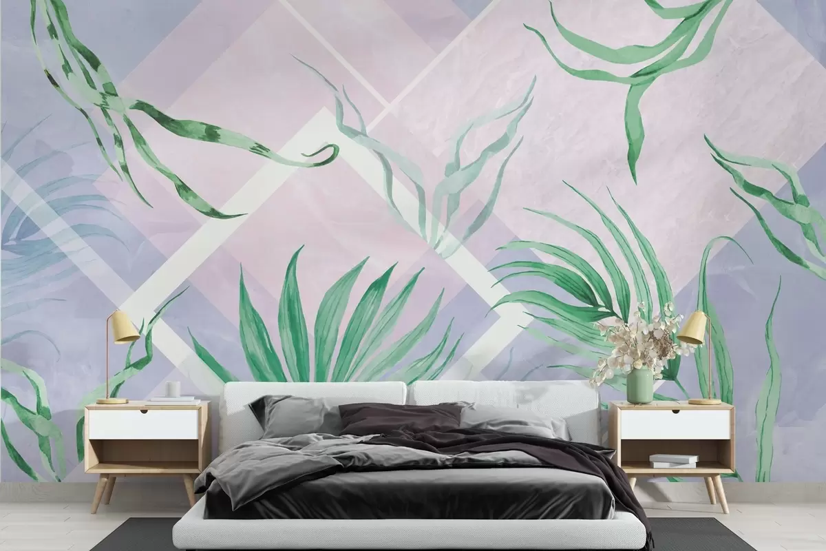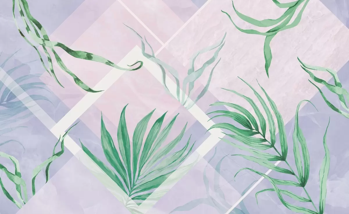 Lush greens on soft pastel backdrop - Wall mural (No. w01625)
