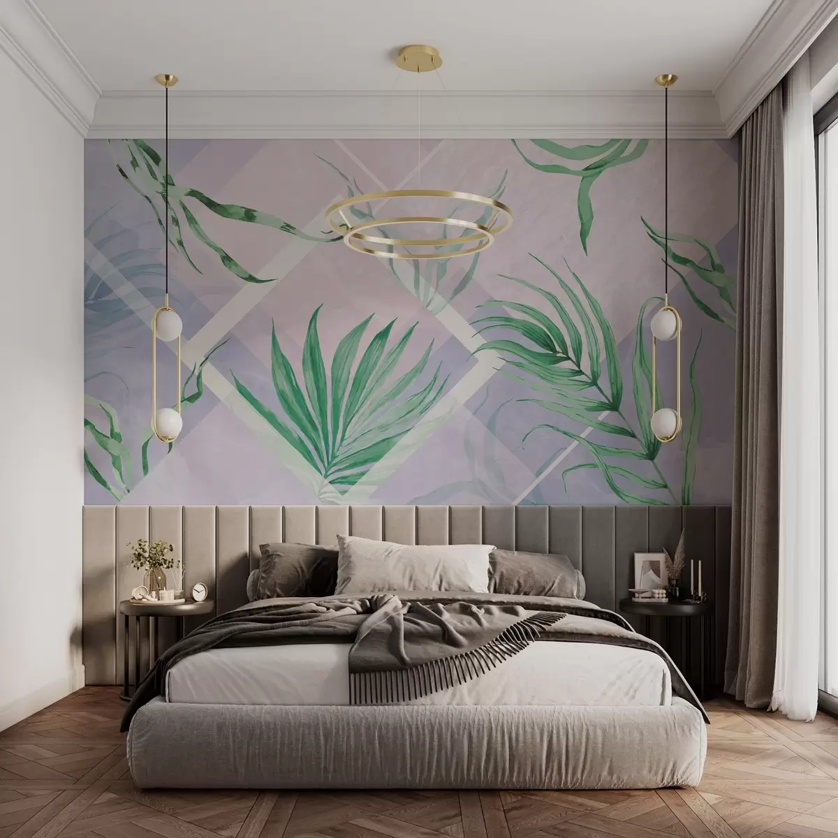 Lush greens on soft pastel backdrop - Wall mural (No. w01625)