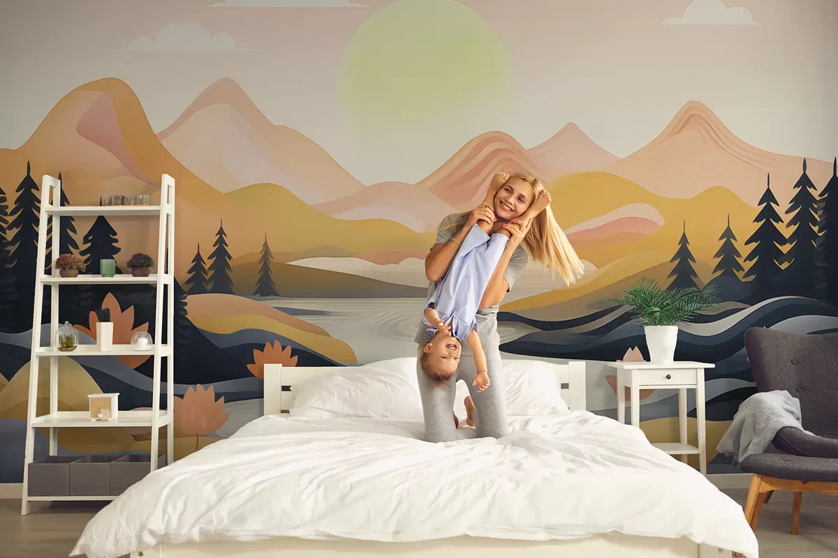 dawn of a crisp autumn morning of mountains - Wall mural (No. w01657)