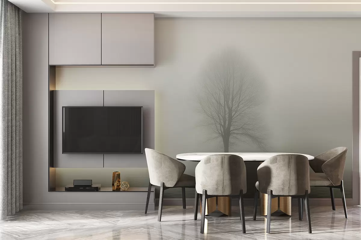 Tree in the fog in dark green colors - Wall mural (No. w01660)