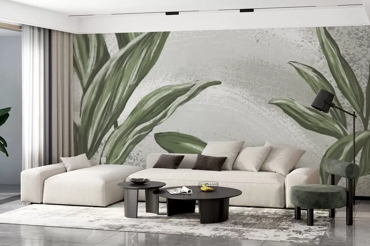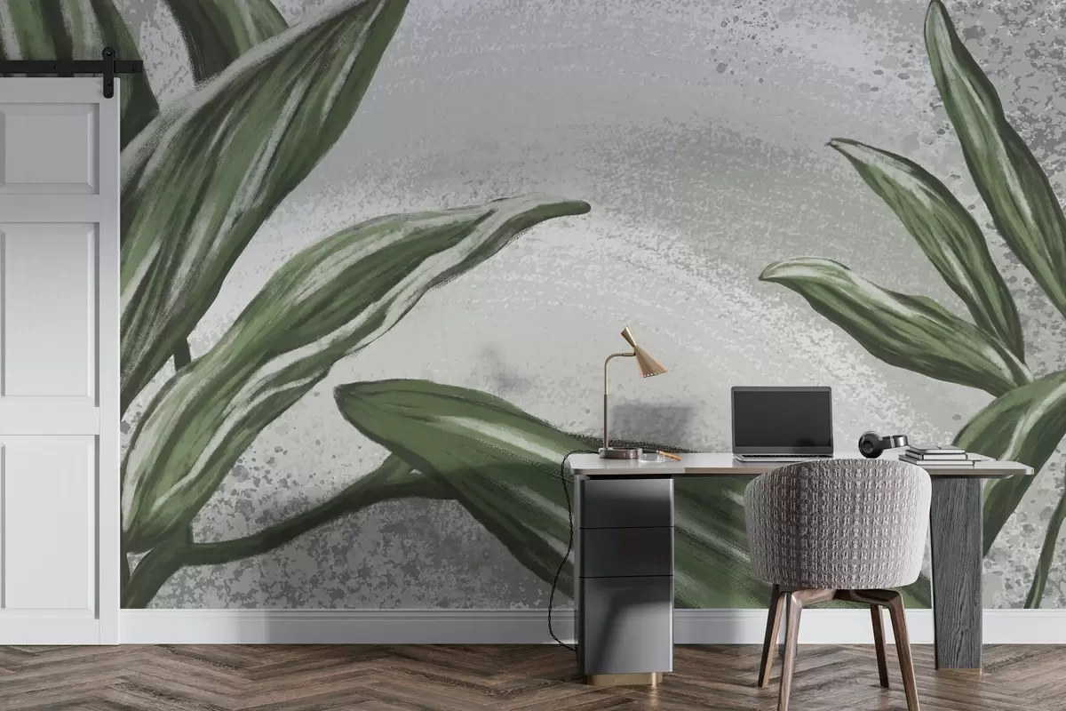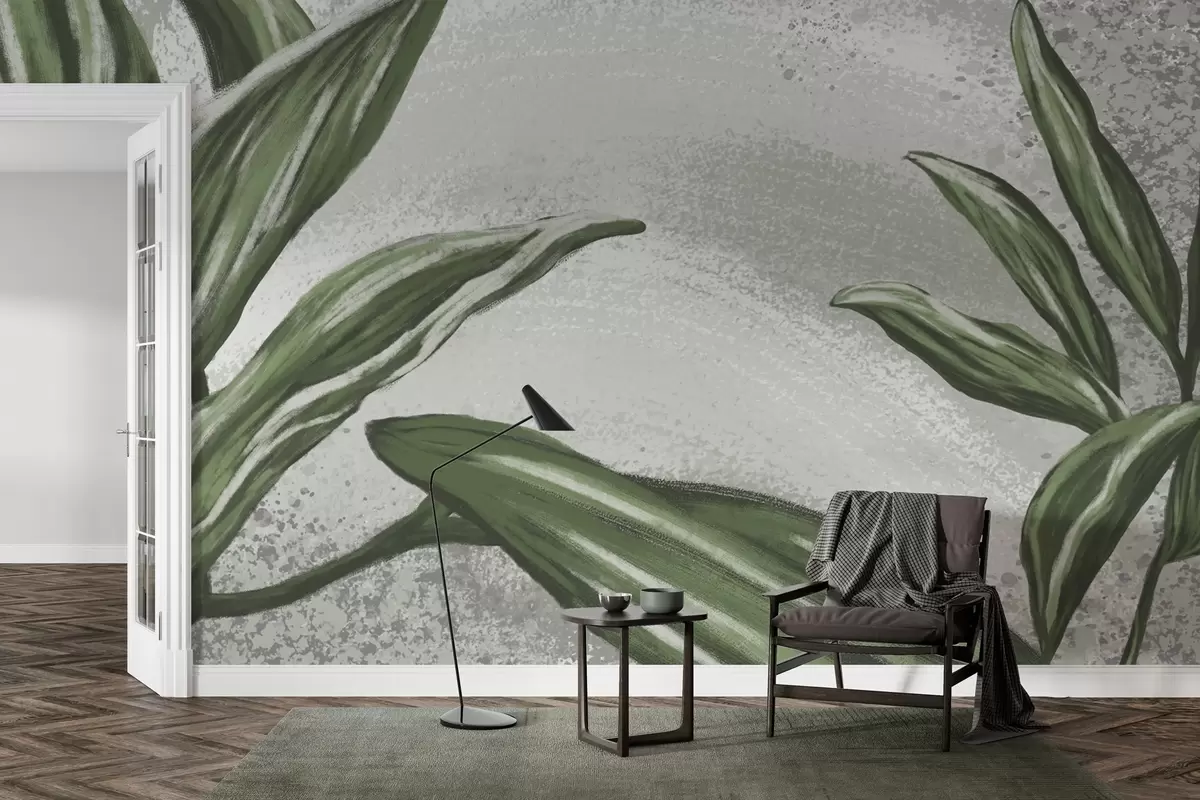 Lush greenery on a textured backdrop - Wall mural (No. w01682)