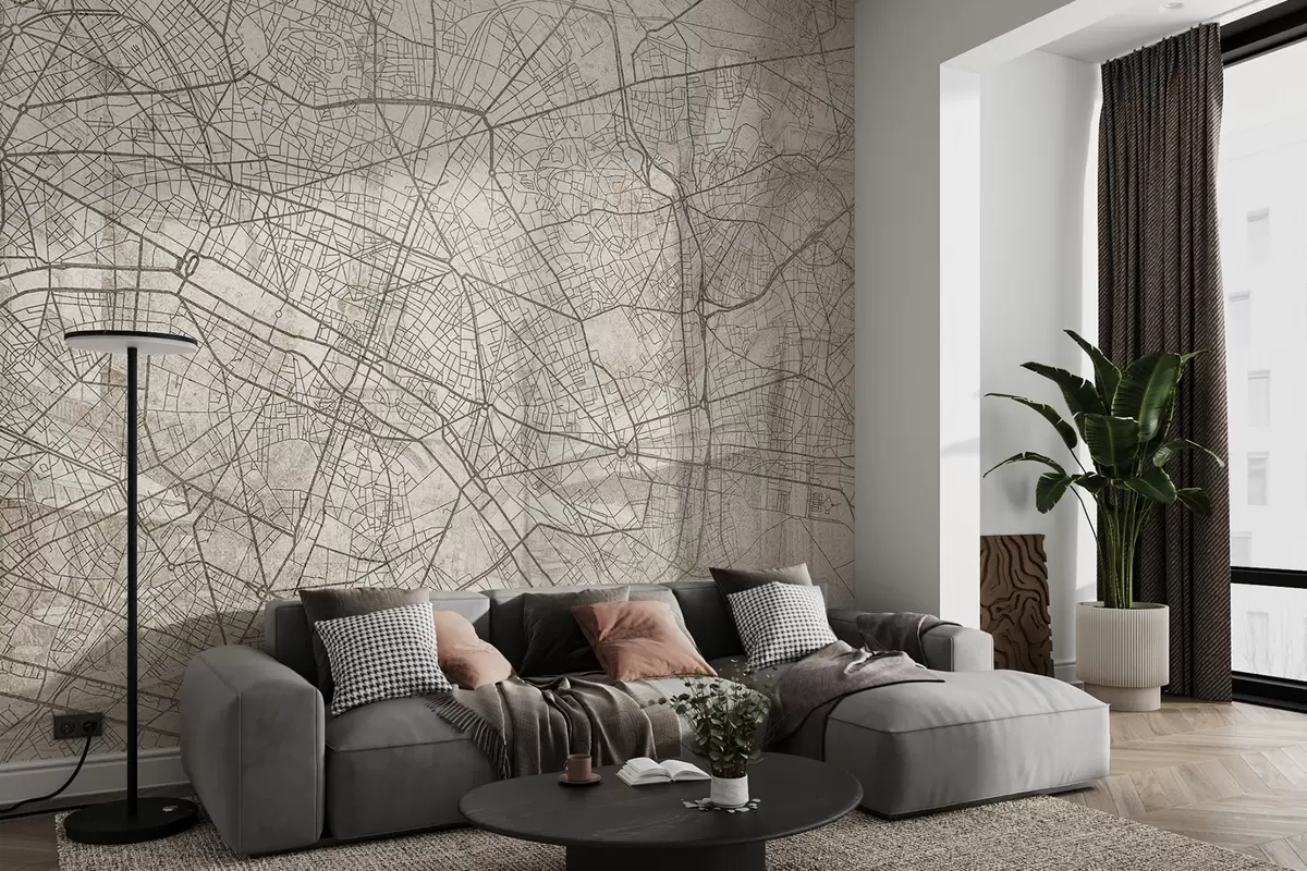 Paris city map, line drawing, architecture, France, beige colors - Wall mural (No. w01697)