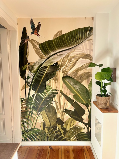 It also makes cleaning easier — you can wipe varnished wallpaper with a damp sponge.