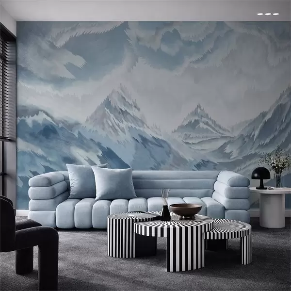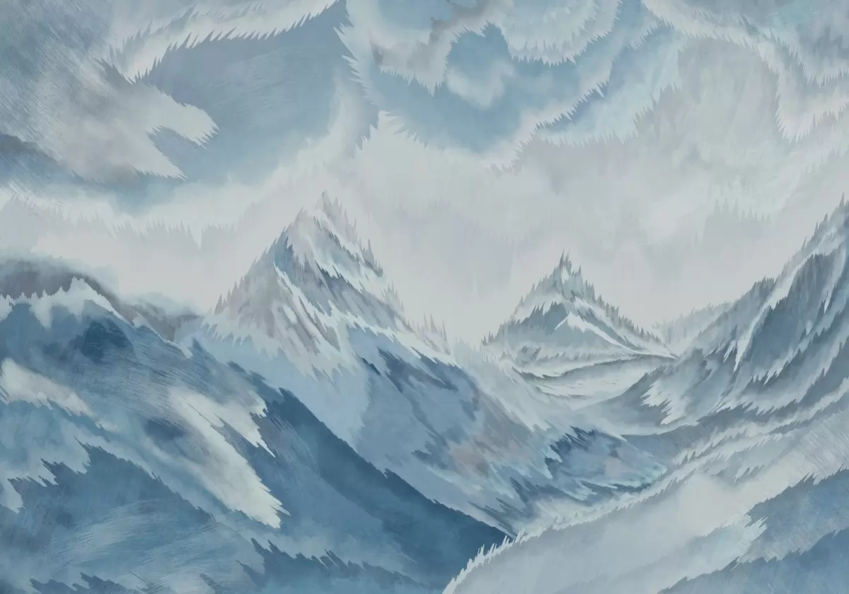Majestic mountains and swirling waves - Wall mural (No. w01763)