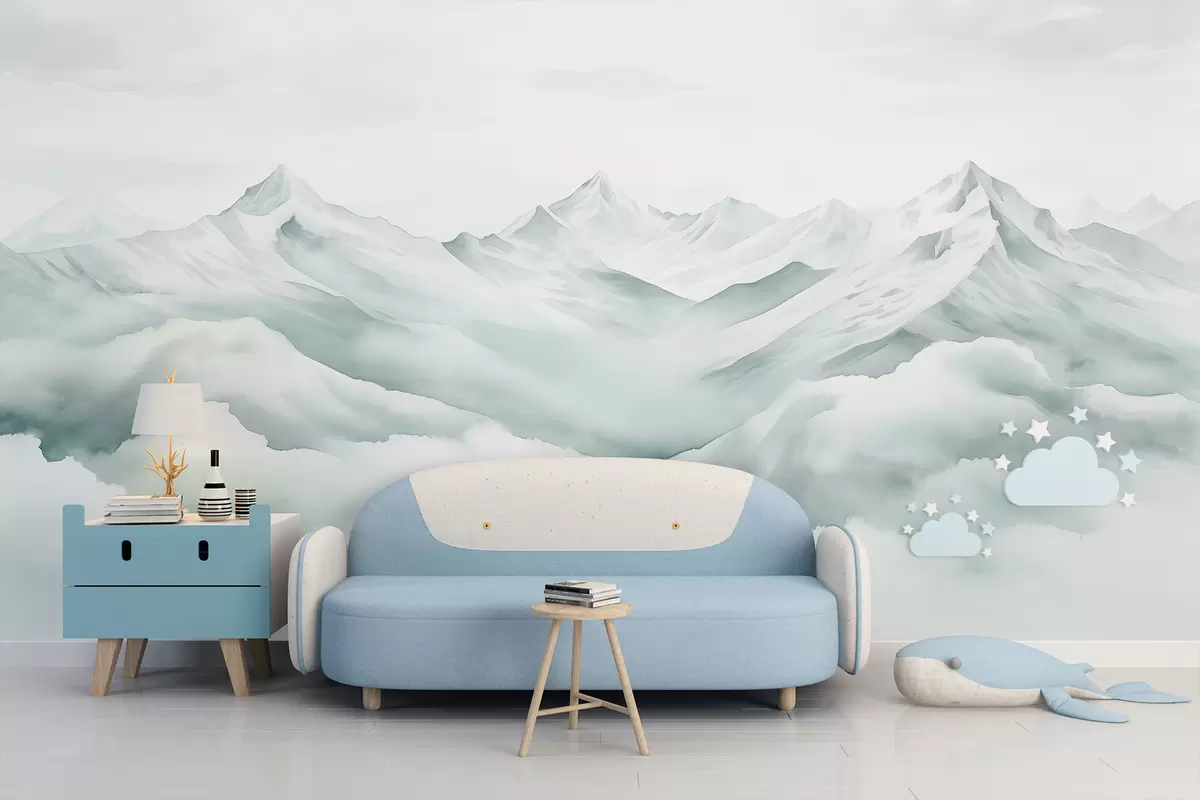 Mountains landscape, watercolor, soft blue colors - Wall mural (No. w01787v2)