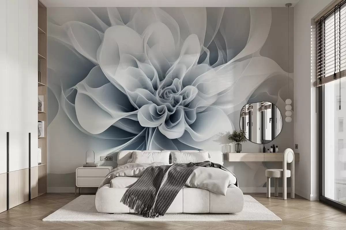 Elegant abstract image of a flower with smooth lines in blue - Wall mural (No. w01853)