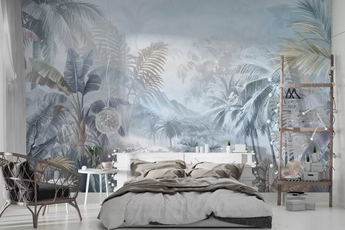 Tropical forest in soft blue tones - Wall mural (No. w01931)