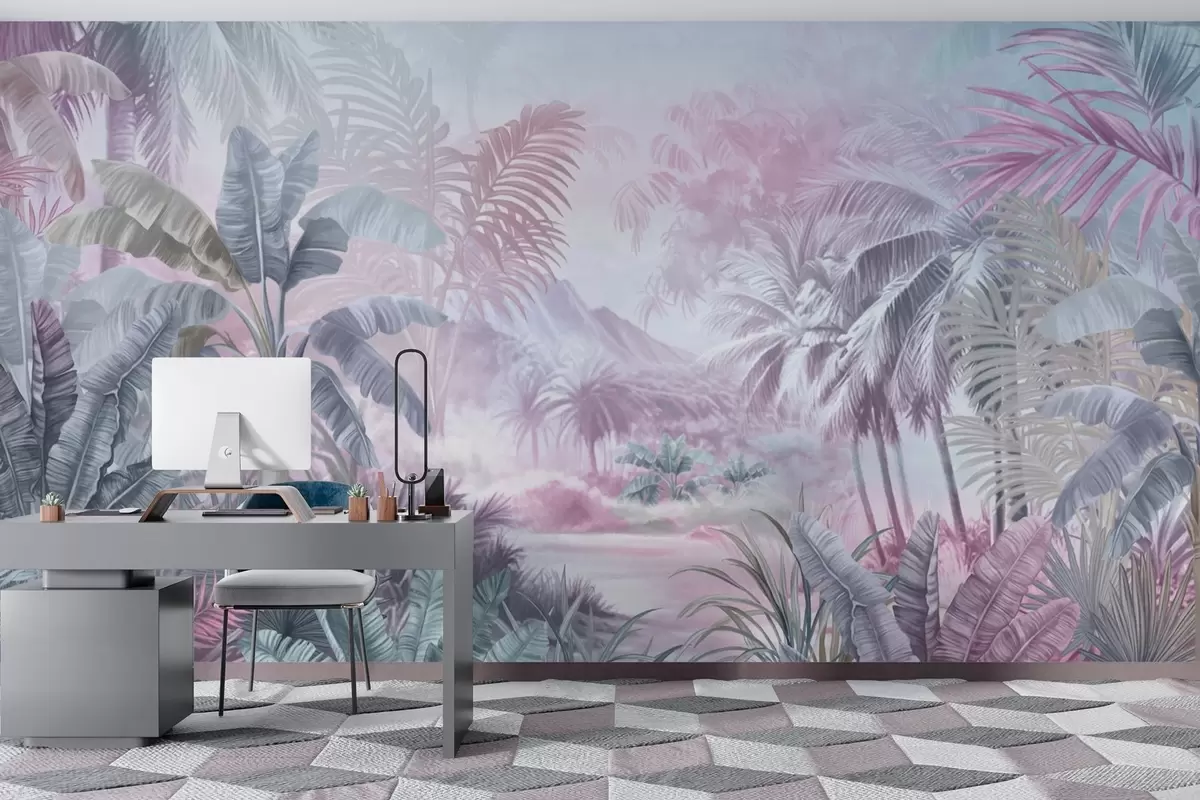 Rainforest in soft blue and pink tones - Wall mural (No. w01931v2)