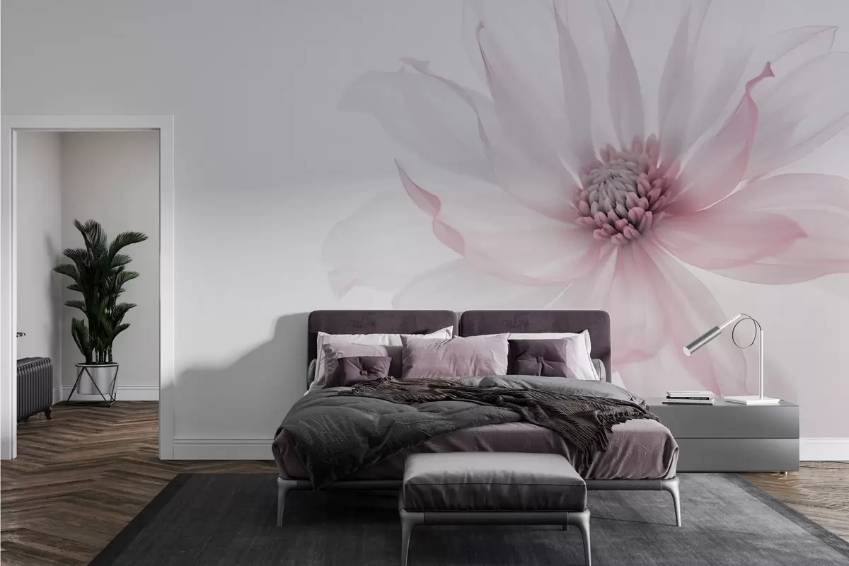 Delicate pink flower on light background - Wall mural (No. w02077v2)