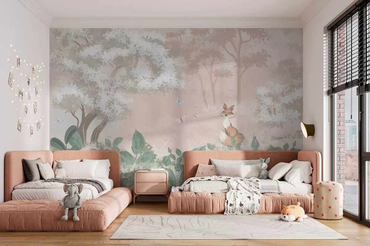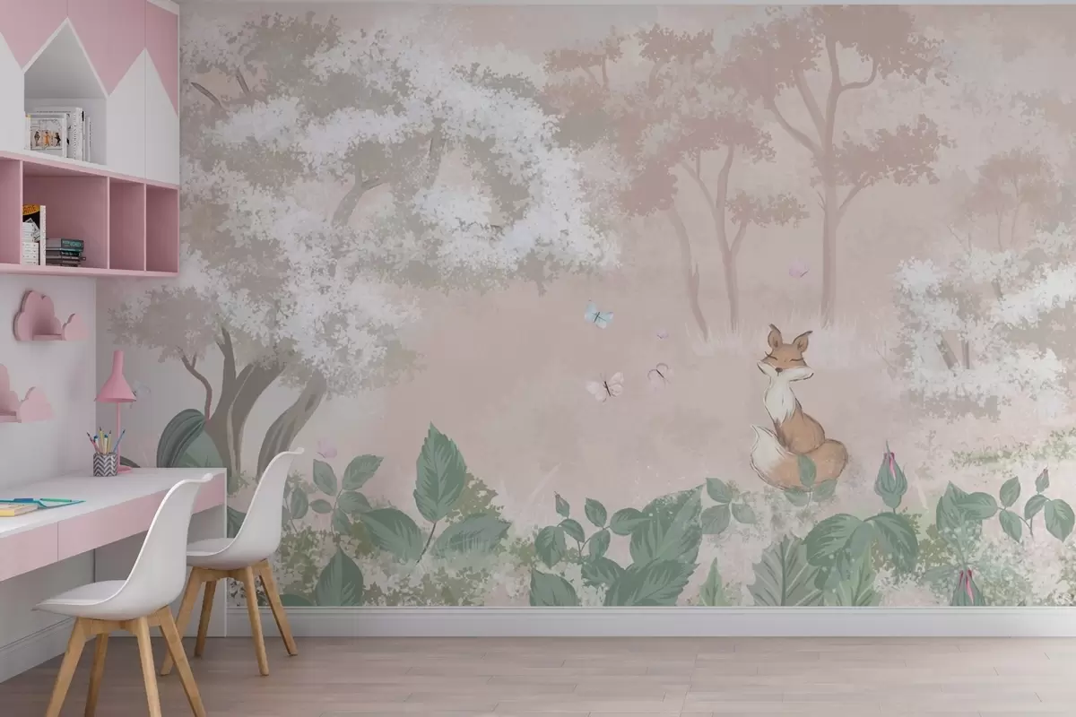 Fairy forest with a chanterelle - Wall mural (No. w02080)