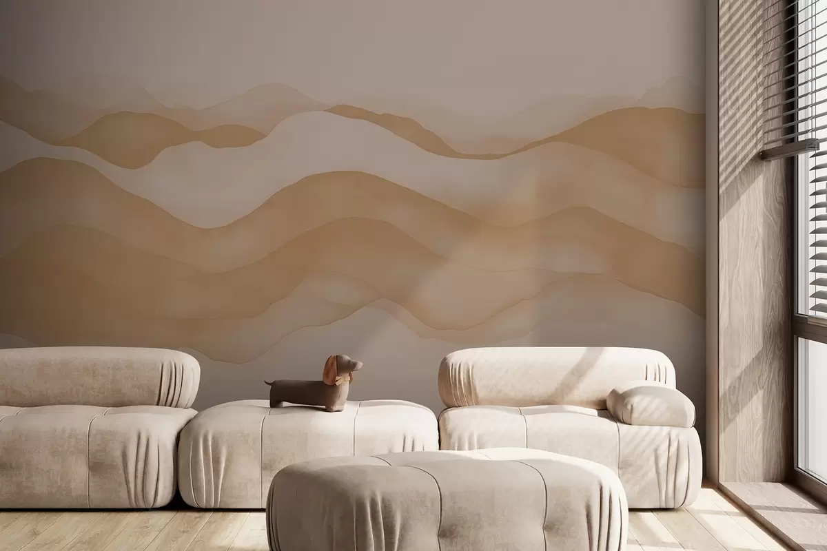 Abstract beige waves reminiscent of mountains - Wall mural (No. w02196v1)