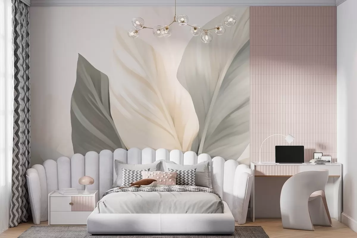 Beige and grey leaves on a light background - Wall mural (No. w02217)
