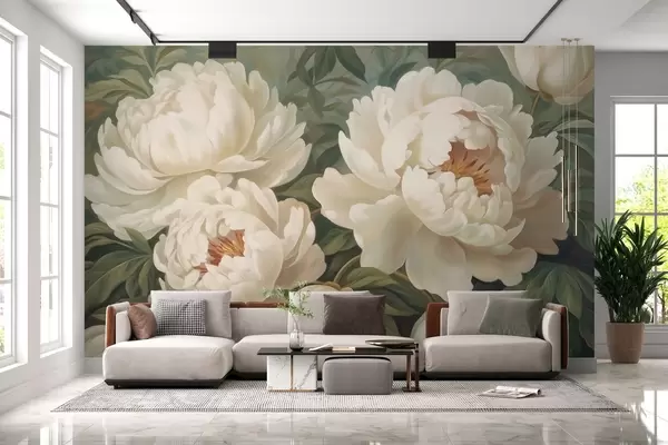 Delicate peonies in pastel colors - Wall mural (No. w02252)
