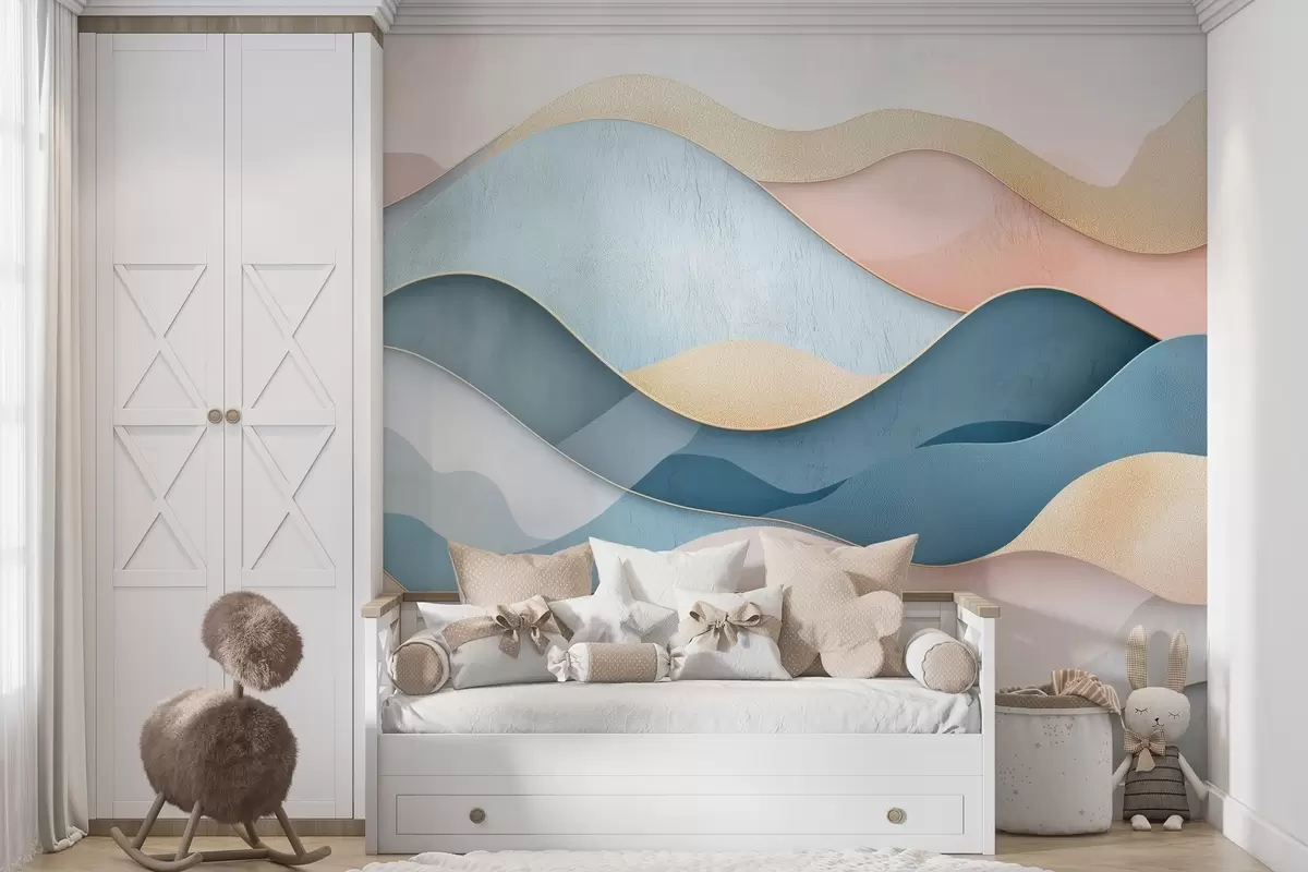 Wavy Art Deco pattern in pink and blue colors - Wall mural (No. w02290)
