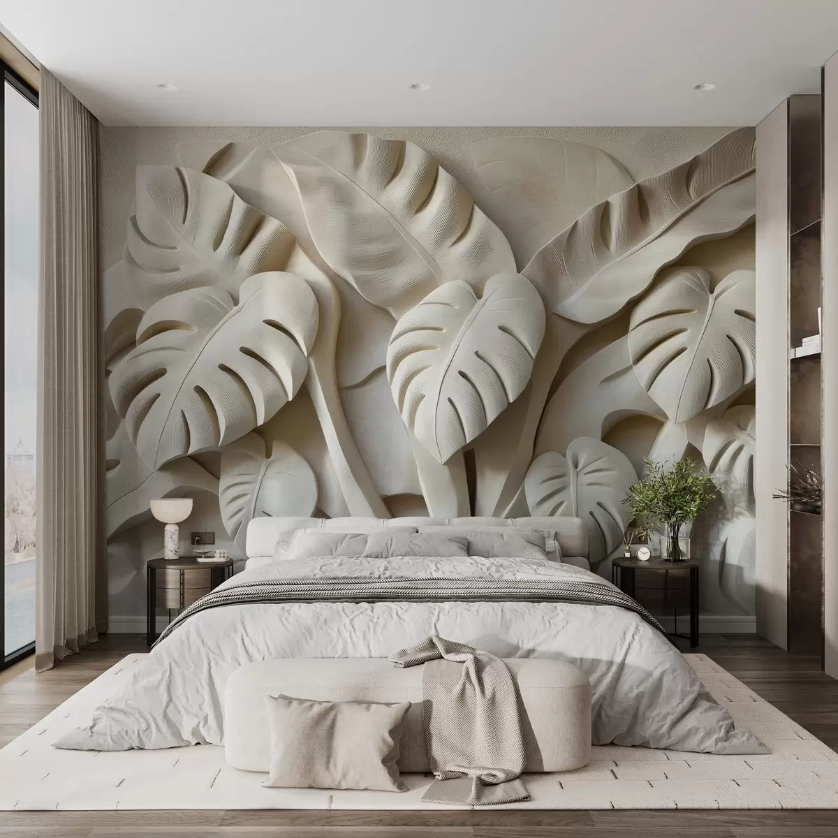 Bas-relief of large monstera leaves - Wall mural (No. w02312)