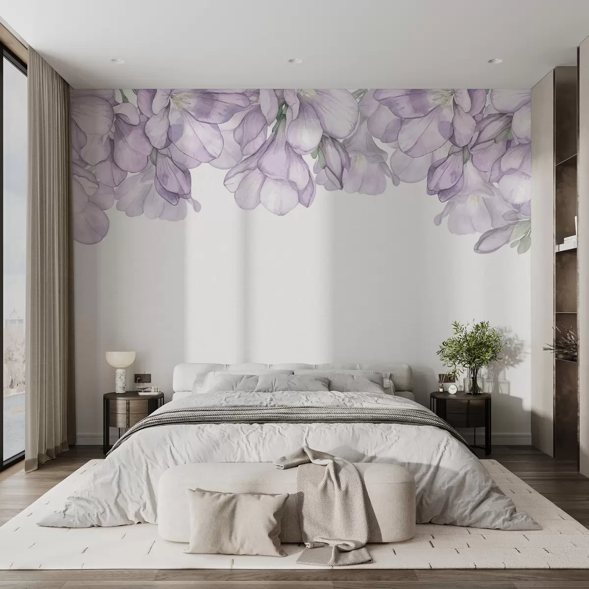 Purple delicate flowers from above - Wall mural (No. w02400)