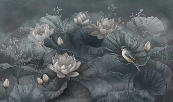 Serenity among nature's elegant blooms - Wall mural (No. w02407)