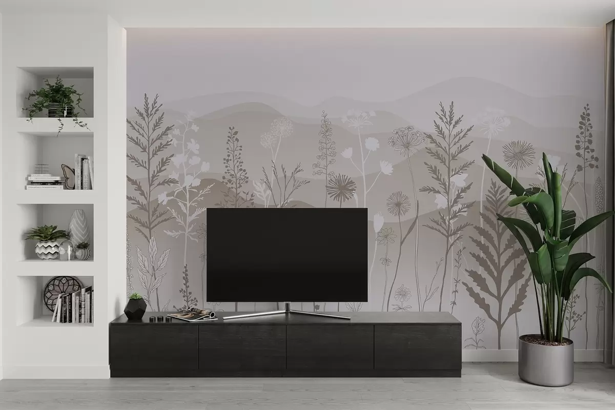 eco-style wallpaper, wildflowers in light brown tones - Wall mural (No. w02443v1)