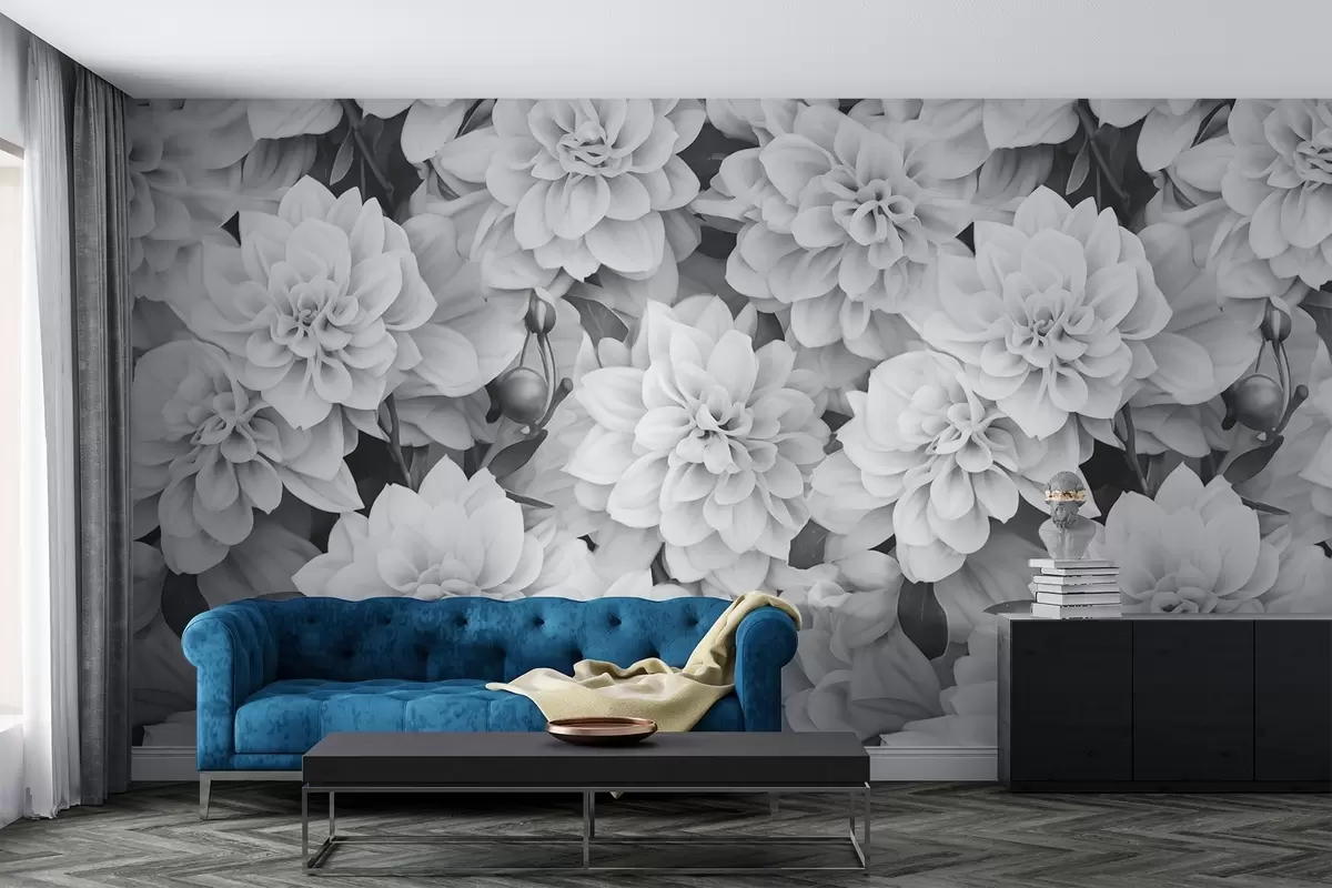 Monochrome dahlia flowers - Wall mural (No. w02464)