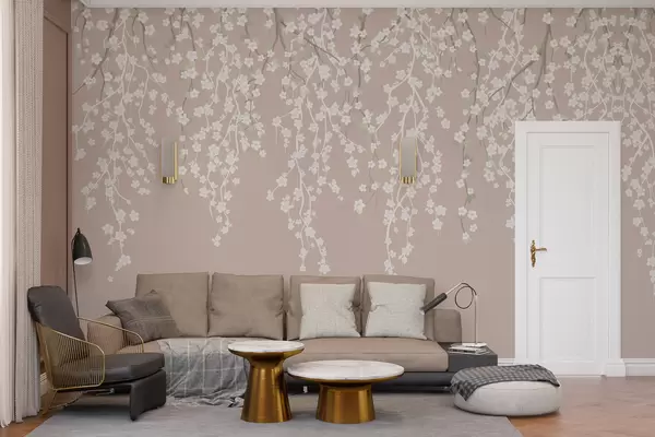 Flowing delicate branches with flowers on a pastel background - Wall mural (No. w02479v2)