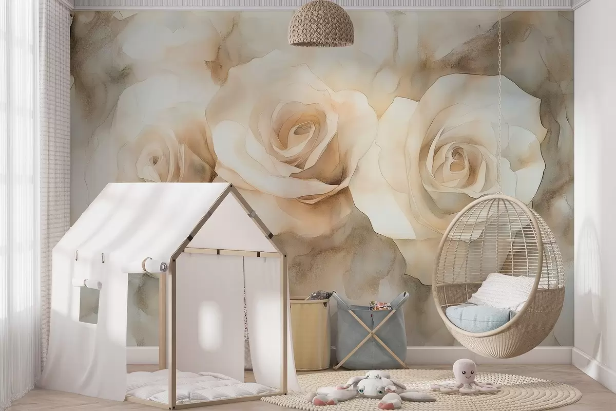 Beautiful roses, watercolor style, beige colors, bohemian - Wall mural (No. w02492)