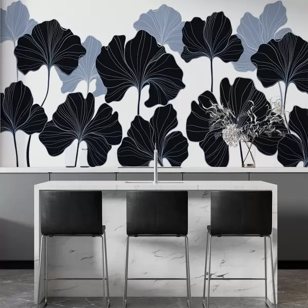 Stylised leaf outlines - Wall mural (No. w02525)