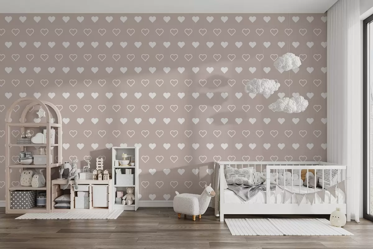 minimalist heart print on a beige background - Wall mural (No. w02548v1)