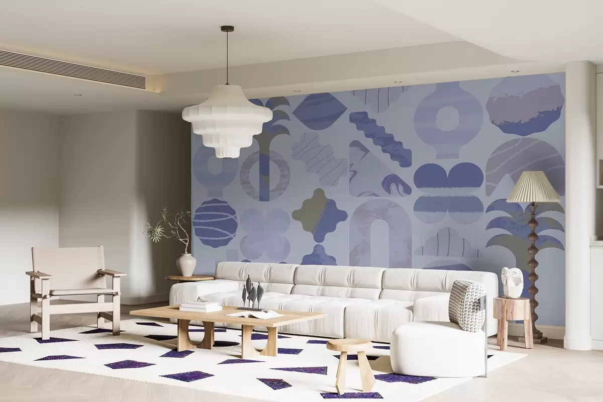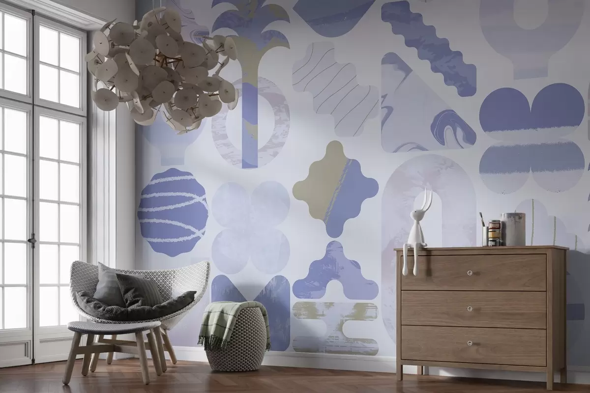 various interesting shapes, modern geometry in blue tones - Wall mural (No. w02550v1)