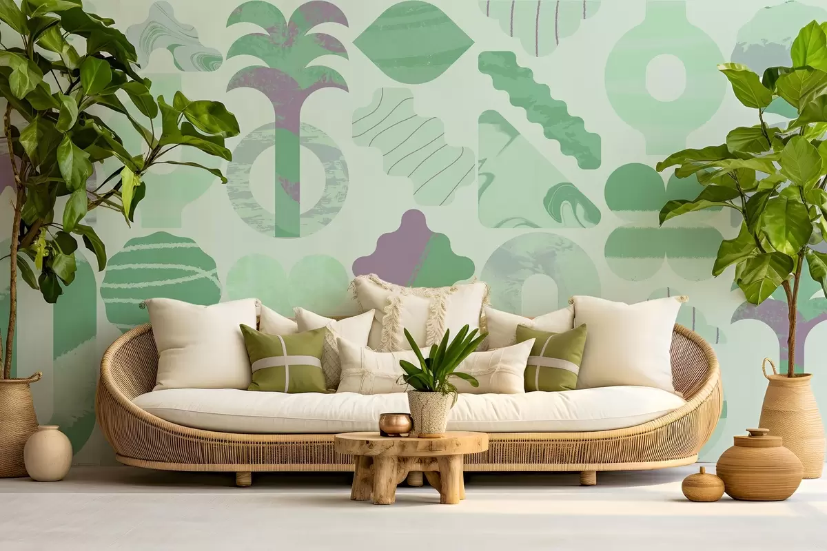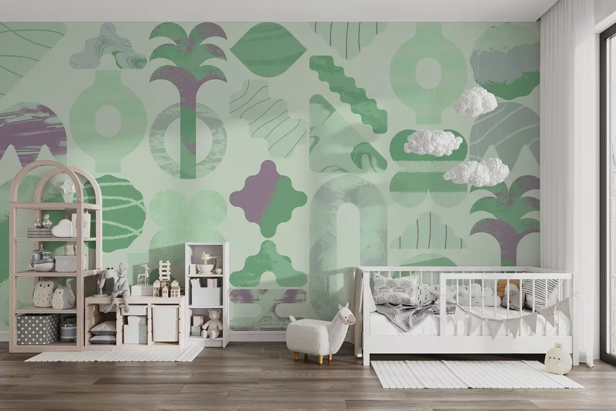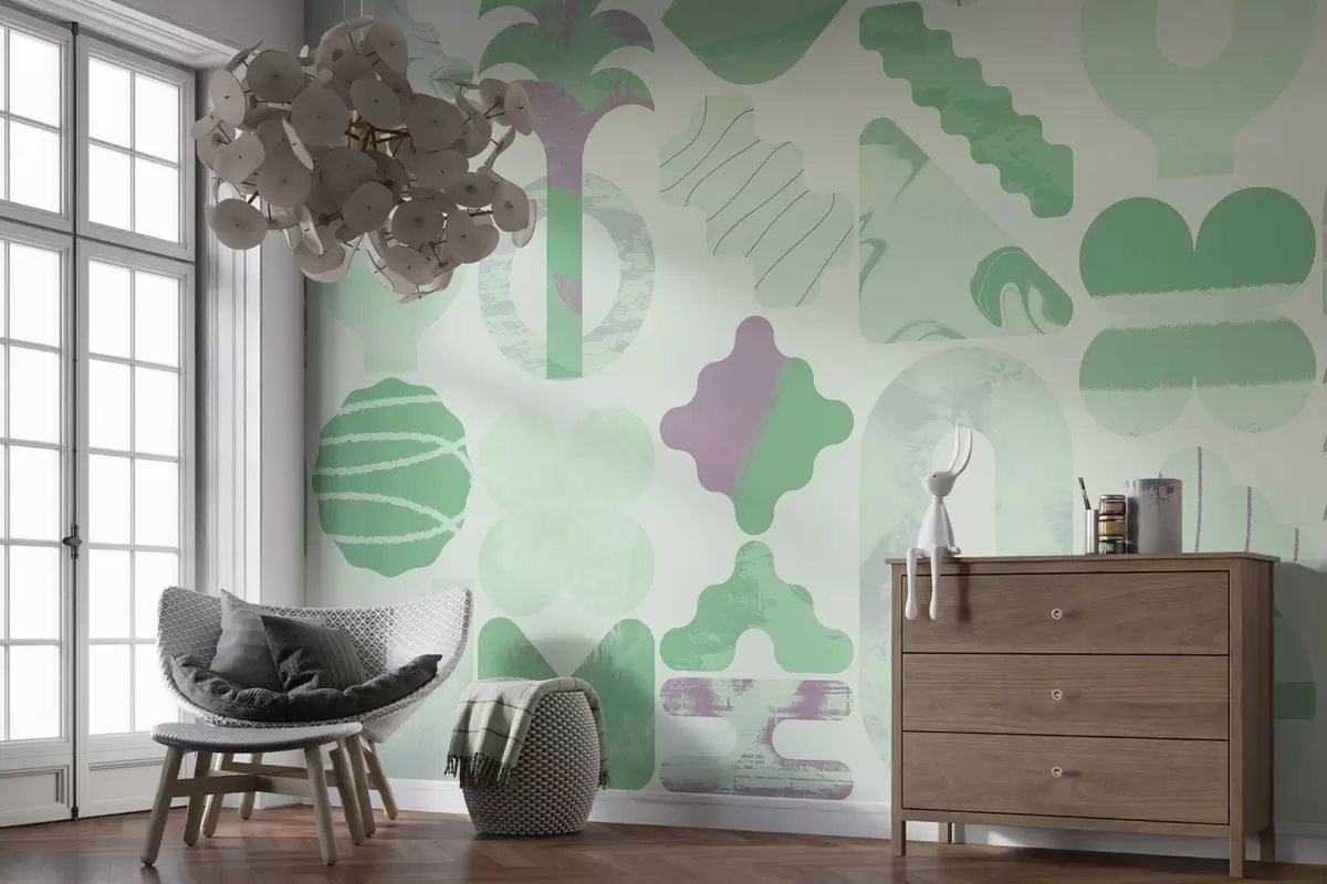 various interesting shapes, modern geometry in green colors - Wall mural (No. w02550v2)