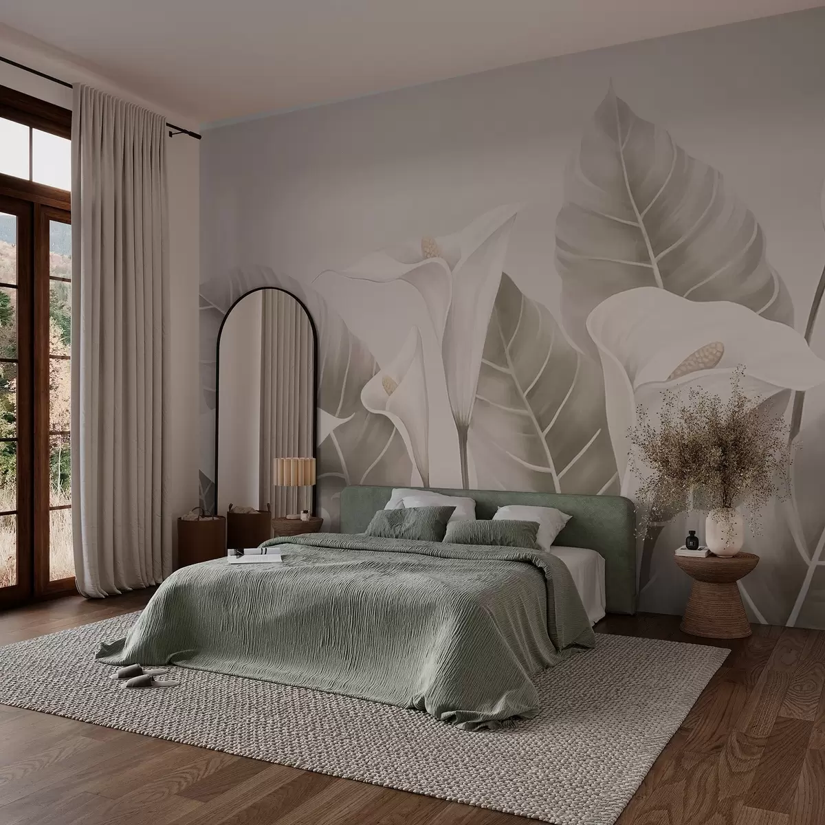 calla lilies on a background of leaves - Wall mural (No. w02568)