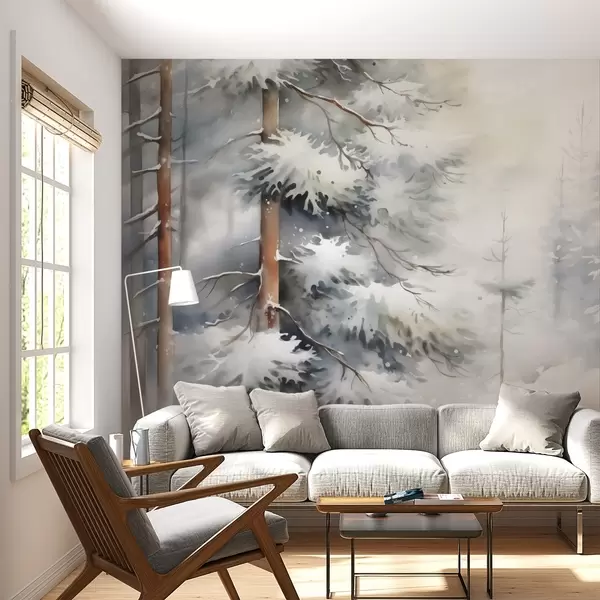 Snowy forest imitation of watercolor - Wall mural (No. w02591)
