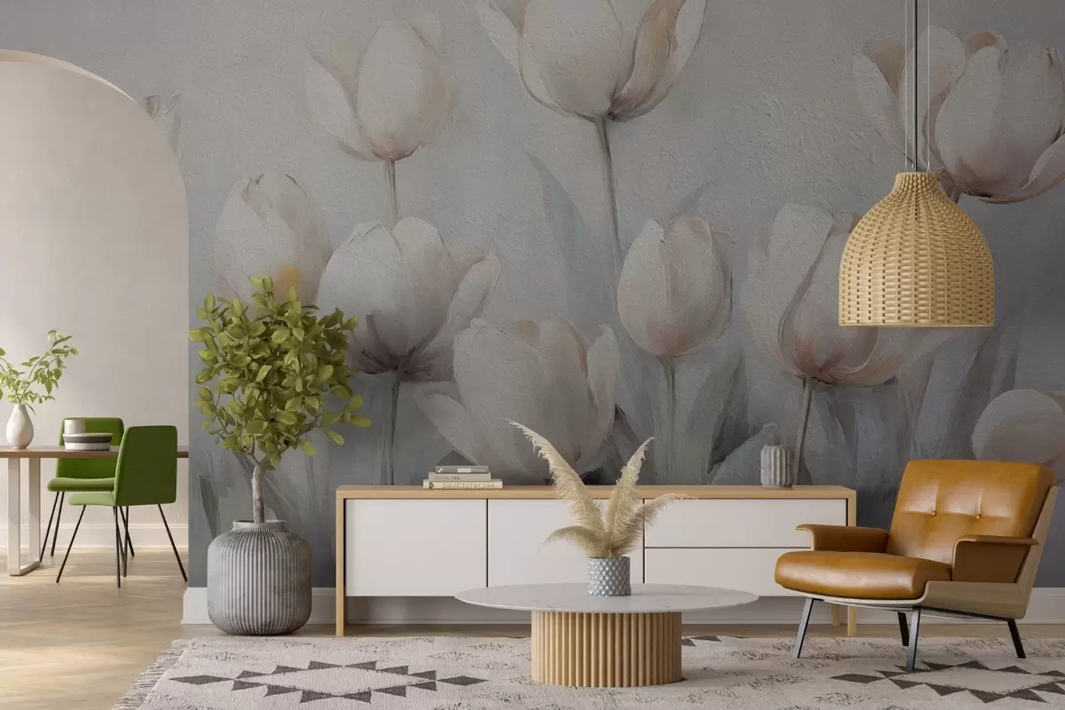 Tulips in grunge style - Wall mural (No. w02618)