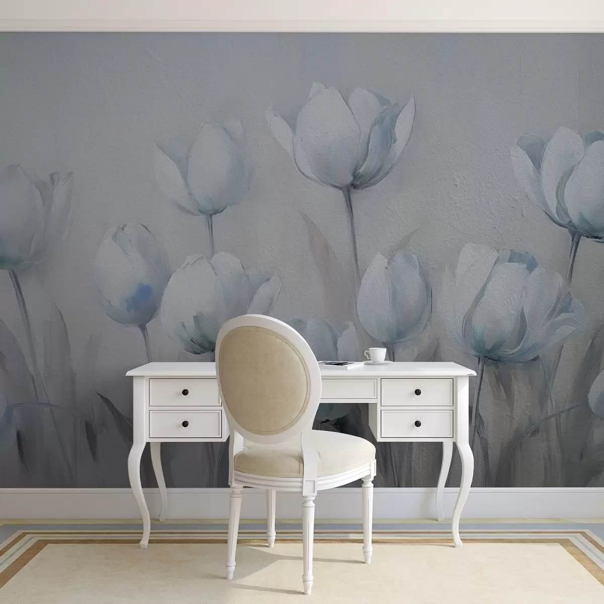 Delicate white blooms in soft hues - Wall mural (No. w02618v1)