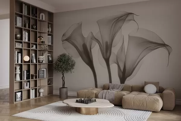 airy transparent Zantedeschia flowers in beige tones - Wall mural (No. w02632)