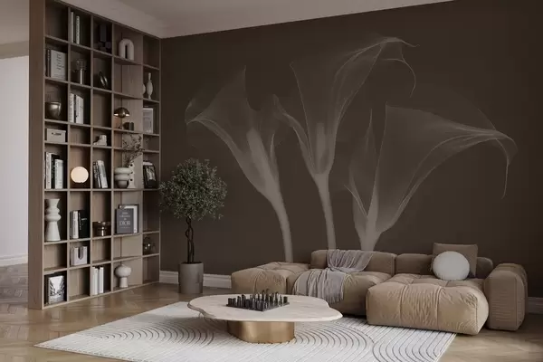 airy transparent Zantedeschia flowers on a dark background - Wall mural (No. w02632v1)