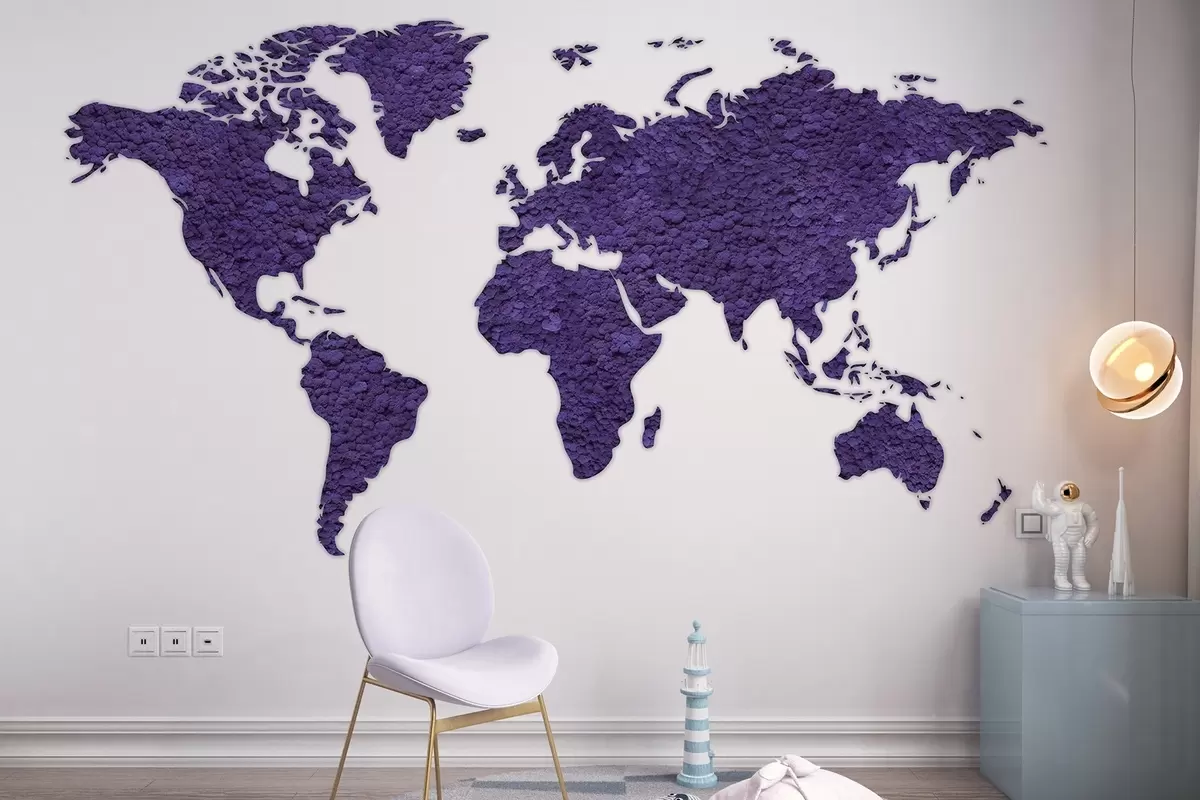 World map with moss, nature, purple color palette - Wall mural (No. w02657v3)