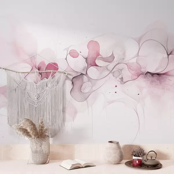 Fluid art style, abstraction, soft pink colors - Wall mural (No. w02745v2)