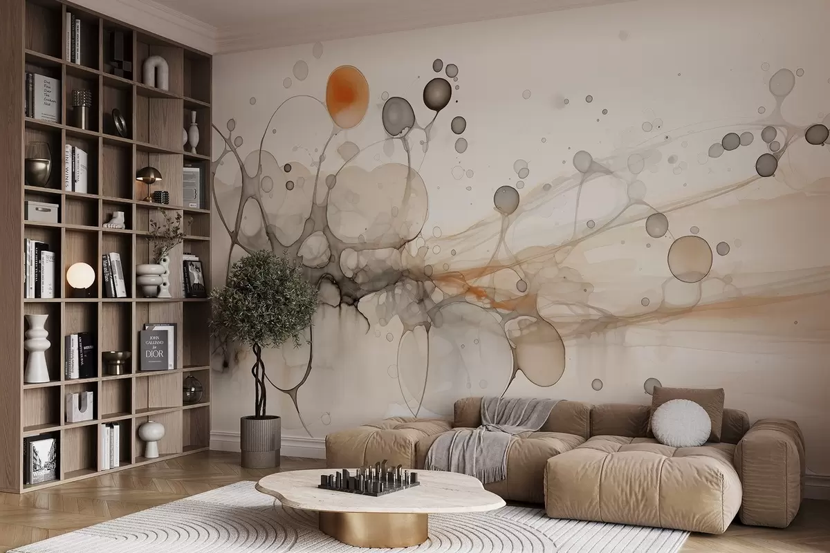 Abstraction, minimalism, ink art, fluid, beige and grey colors - Wall mural (No. w02750)