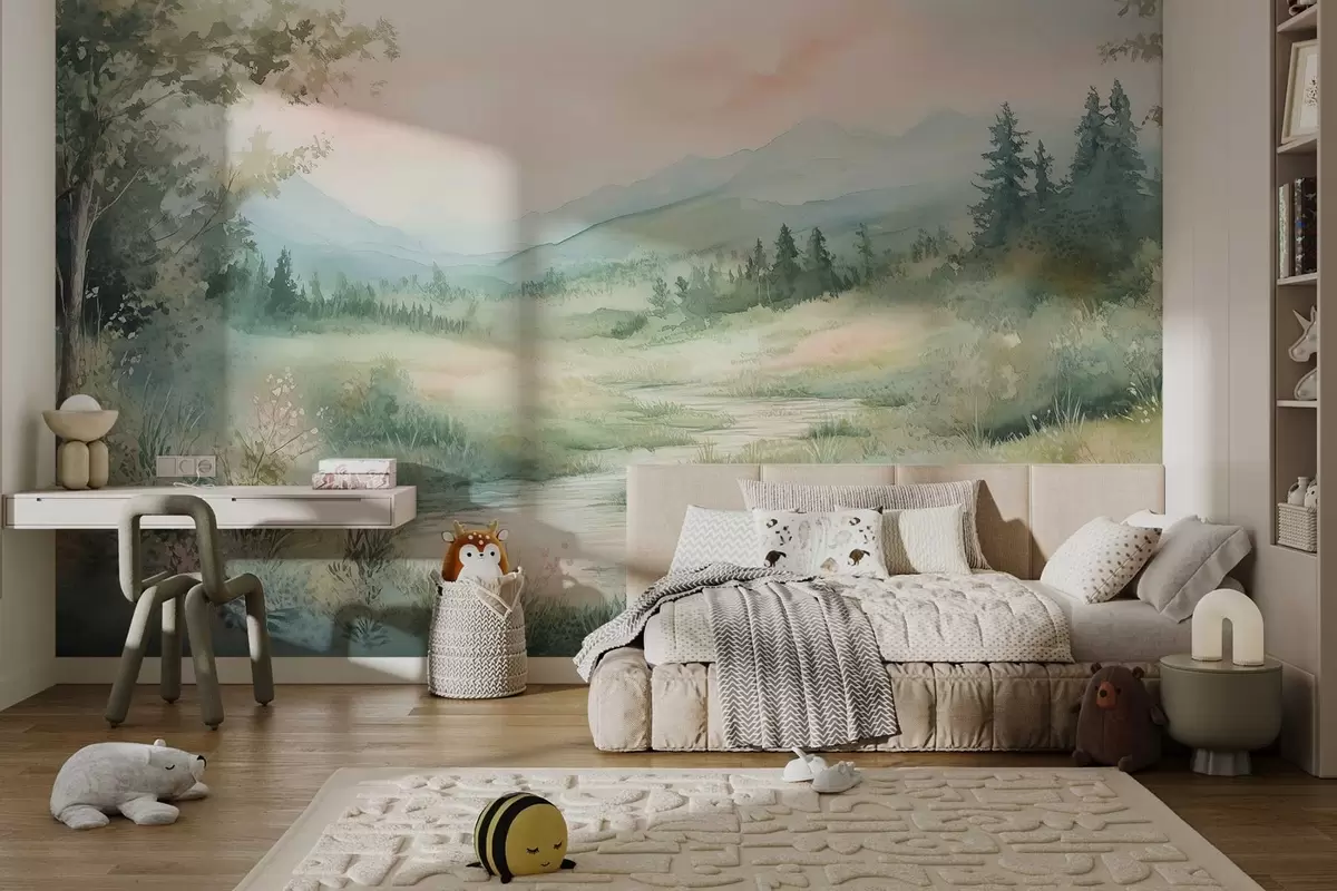 watercolor landscape with a path and mountains - Wall mural (No. w02764)