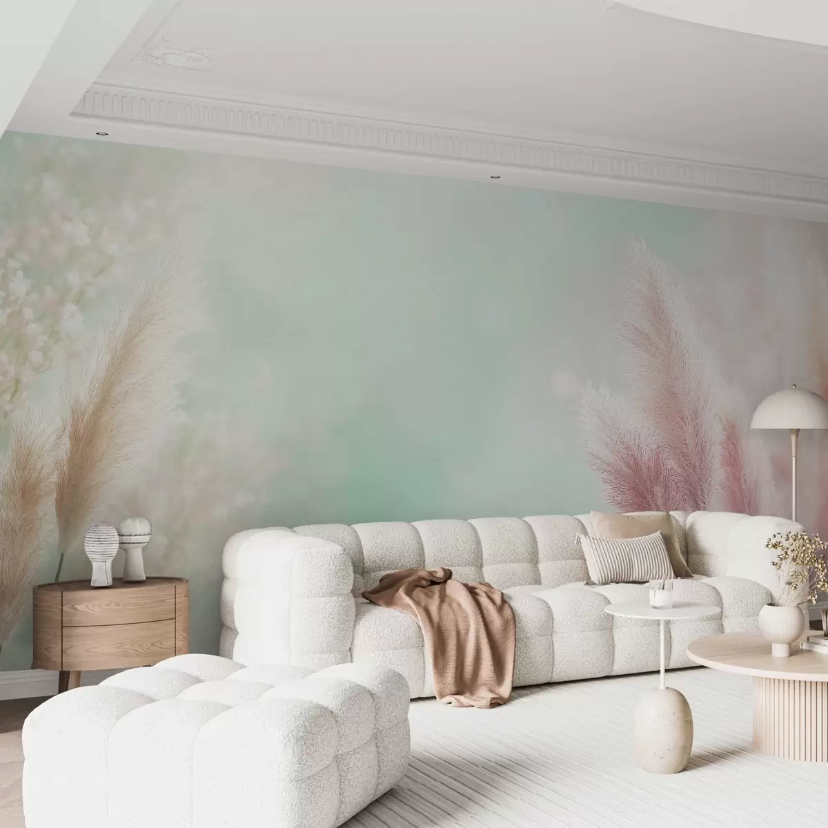 pampas grass on a delicate turquoise background - Wall mural (No. w02766)