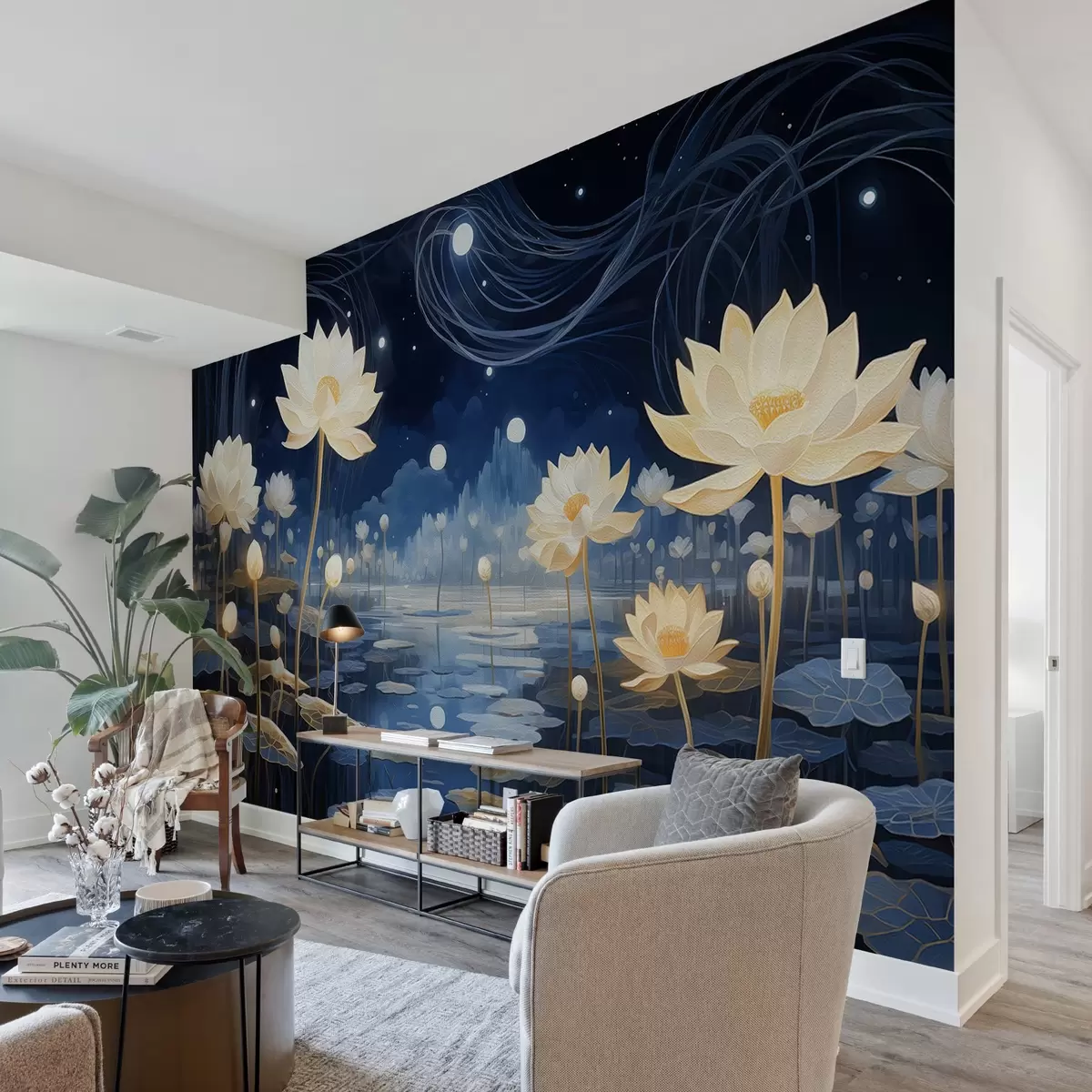 Oil painting lotuses at night - Wall mural (No. w02848)