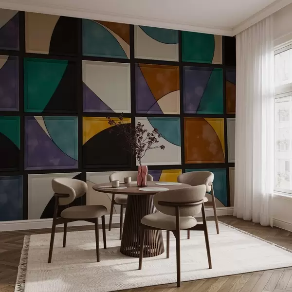 Colored mosaic squares on a dark background - Wall mural (No. w02849)