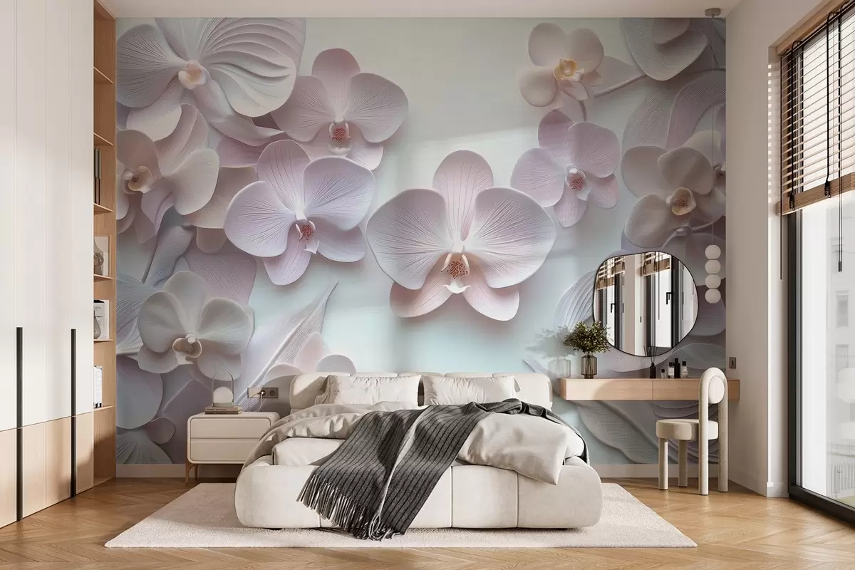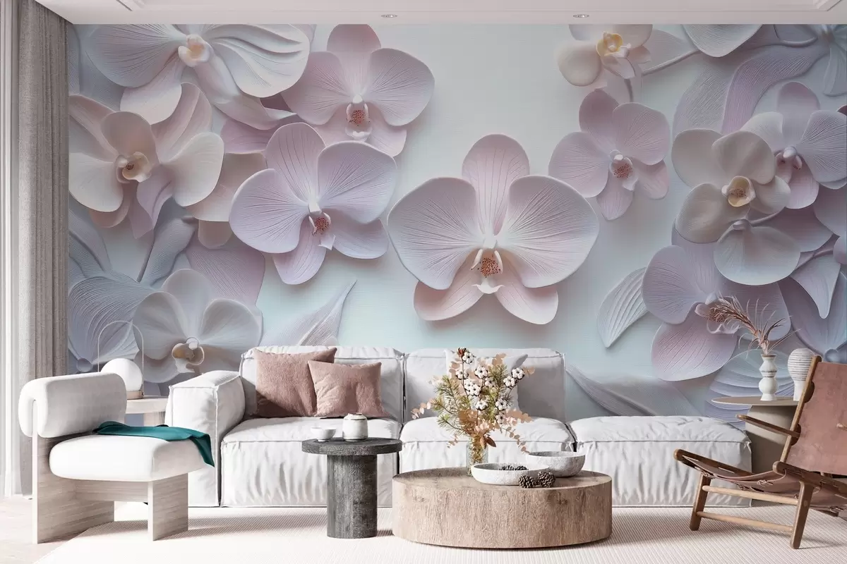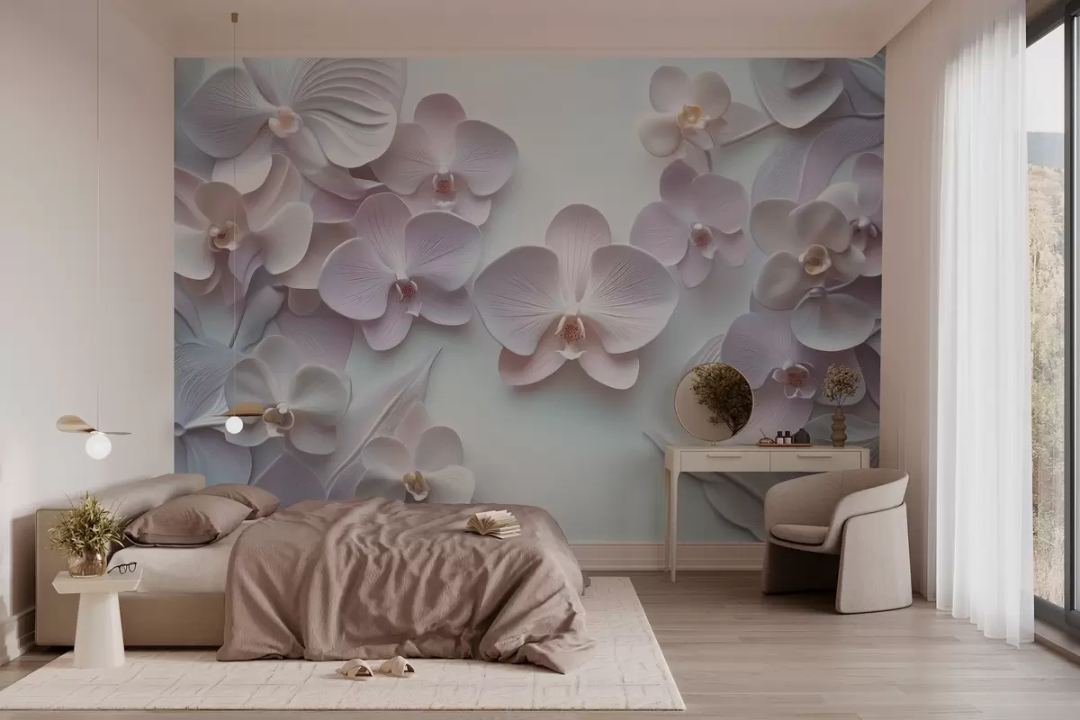 Delicate archidia flowers in light colors with 3D imitation - Wall mural (No. w02912)