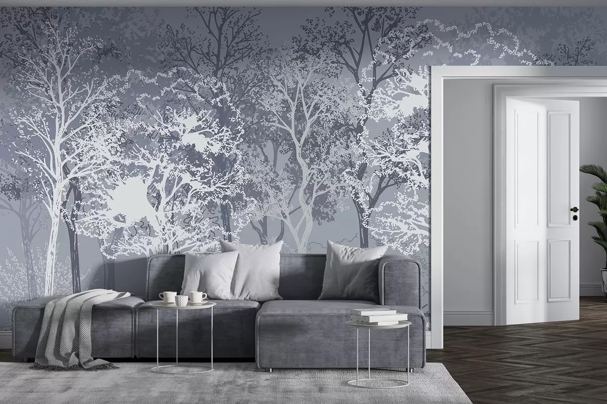 Trees in the forest, minimalism, nature, blue color palette - Wall mural (No. w02930v2)